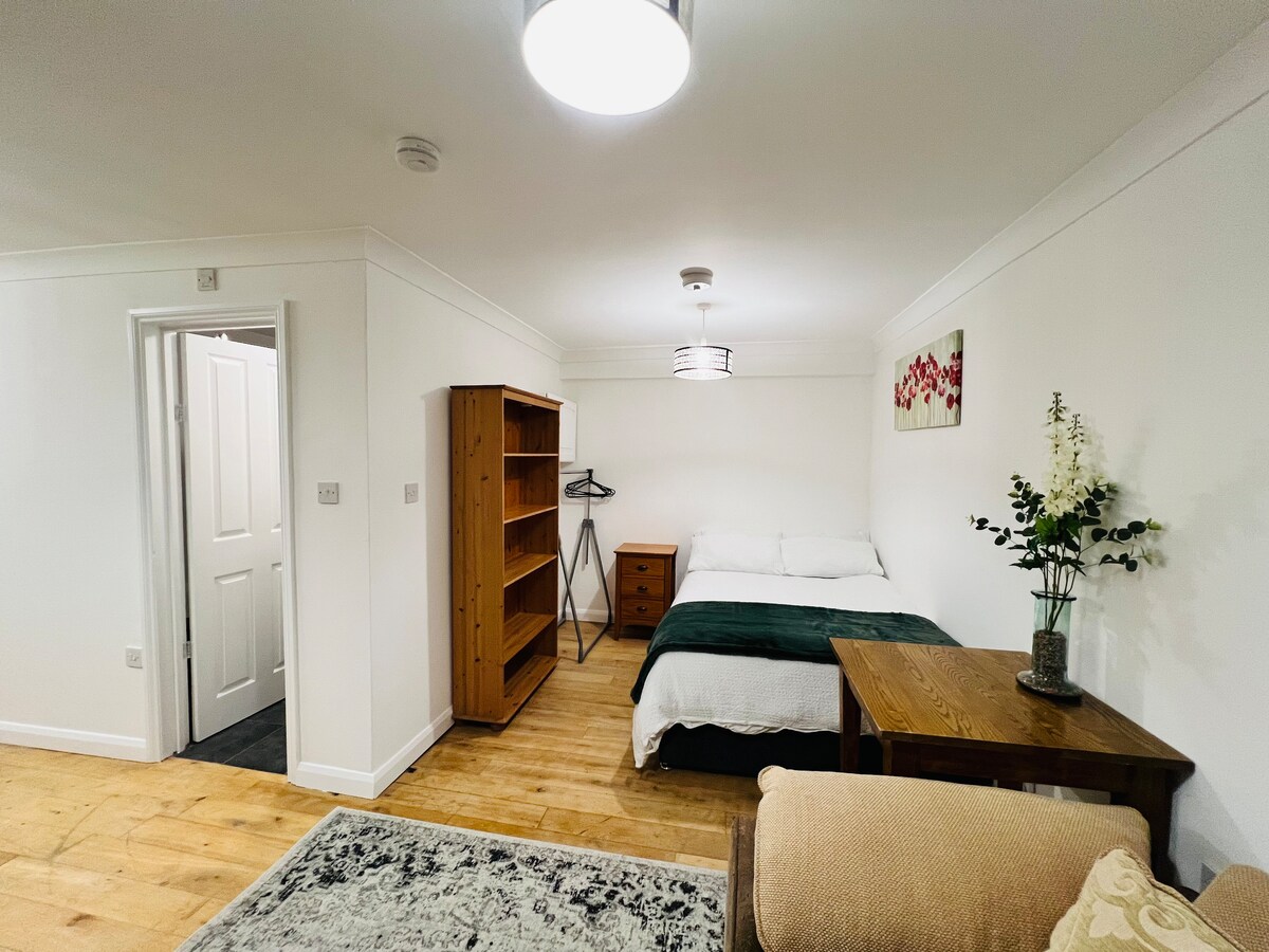 Lijep studio apartman s parkingom na prilazu, u blizini centra grada Guildforda. Bračni krevet (širine 180–200 cm), opremljena kuhinja s pećnicom/mikrotalasnom pećnicom, frižider, Nespresso aparat, pametni TV i kupatilo s tušem. Nalazimo se u vrlo mirnom području, ali samo nekoliko minuta vožnje od centra grada Guildforda. Naš vrt graniči sa North Downsom koji je odličan za šetače. Privatni ulaz (uz stepenice) i besplatan parking iza električnih vrata. Mlijeko, čajna kafa itd., kao i sve ostalo što vam je potrebno.