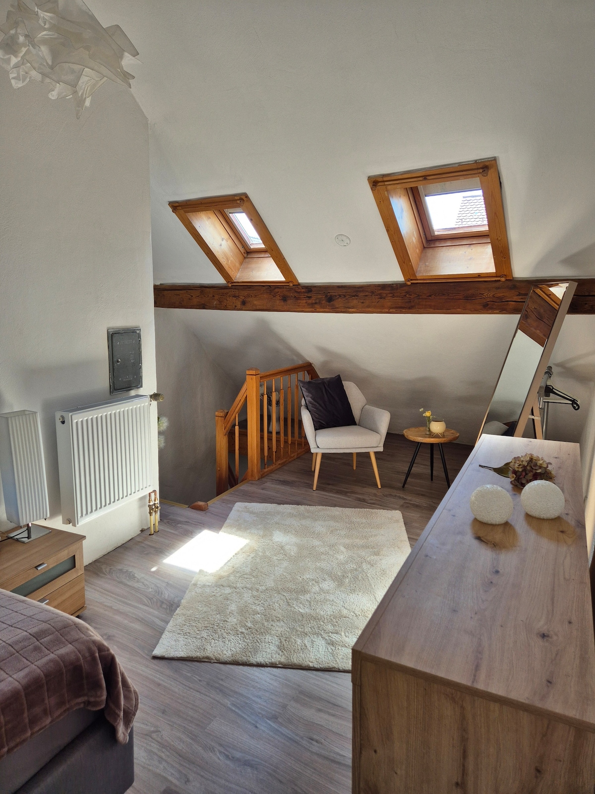 The apartment is on the ground floor of an old farmhouse, newly renovated and modernly equipped. Excellently located, between the Black Forest, Lake Constance and Alb. Ideal for 2 people. Living-bedroom with sitting area and double bed, blackout blinds. Fully equipped kitchen: Senseo coffee machine... Daylight bathroom with rainforest shower. The apartment is self-contained, we live upstairs and use the same entrance. The apartment is pet-free, but our cat lives in the house and garden.