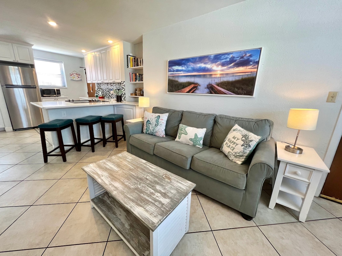 This homey unit boasts a full kitchen with stainless appliances - including a dishwasher! Plus, enjoy your very own washer & dryer! You will be so close to the beautiful beach, fun bars & restaurants... yet, this rental space is located in a peaceful neighborhood. Enjoy a private porch area, off street parking and so much more. The famous John's Pass is only 1.5 miles away. There, you can book excursions, shop, eat and listen to live music. Unit 1 has a dedicated work space, 2 TVs & more!