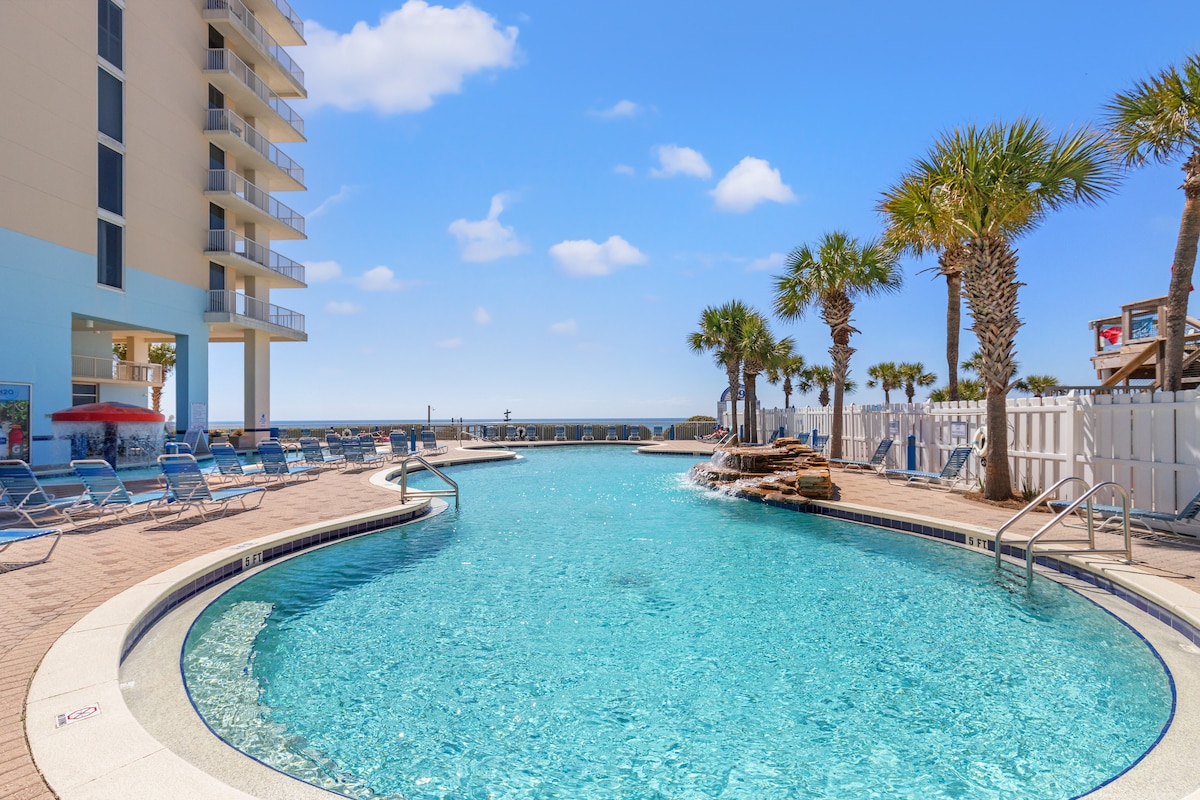 Od februara 2025. jedinica je ažurirana zemljanim, neutralnim boemskim stilom za miran i ugodan boravak. Uživajte u novom madracu od memorijske pjene, led svjetlom uveličavajućem ogledalu, namjenskom radnom prostoru i stanici za kafu. Majestic Beach Resort Tower 1, Studio, 7. sprat! Dobro došli u svoj raj uz zaljev! S vanjskim i unutrašnjim bazenima, masažnim kadama i obalom od 150 metara! Toliko toga za uživanje, sve u odmaralištu! Starbucks, Bar & Grill, Market & Gift Shop, kino i još mnogo toga!