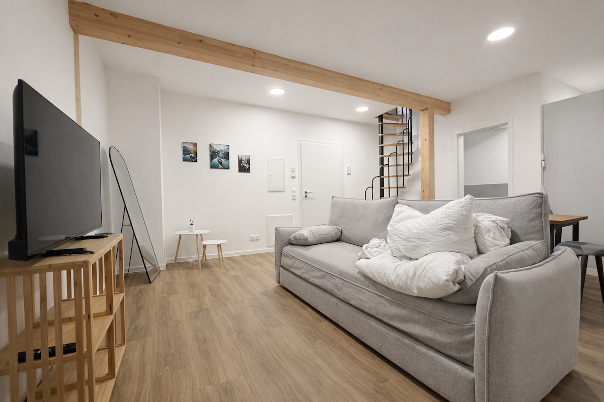 Dobrodošli u KC Hostings! Naš prostrani deluxe stan s 3 sobe na centralnoj lokaciji u Reutlingenu nudi moderan, ukusan privremeni dom, idealan za porodice, poslovne putnike ili grupe prijatelja. Dvije odvojene spavaće sobe, svijetli dnevni boravak/trpezarija i potpuno opremljena kuhinja pružaju fleksibilnost i udobnost za do 4 osobe. Moderno kupatilo s tuš kabinom i odvojenim WC-om osigurava funkcionalan raspored prostorija, posebno za nekoliko gostiju. Mirna, ali centralna lokacija
