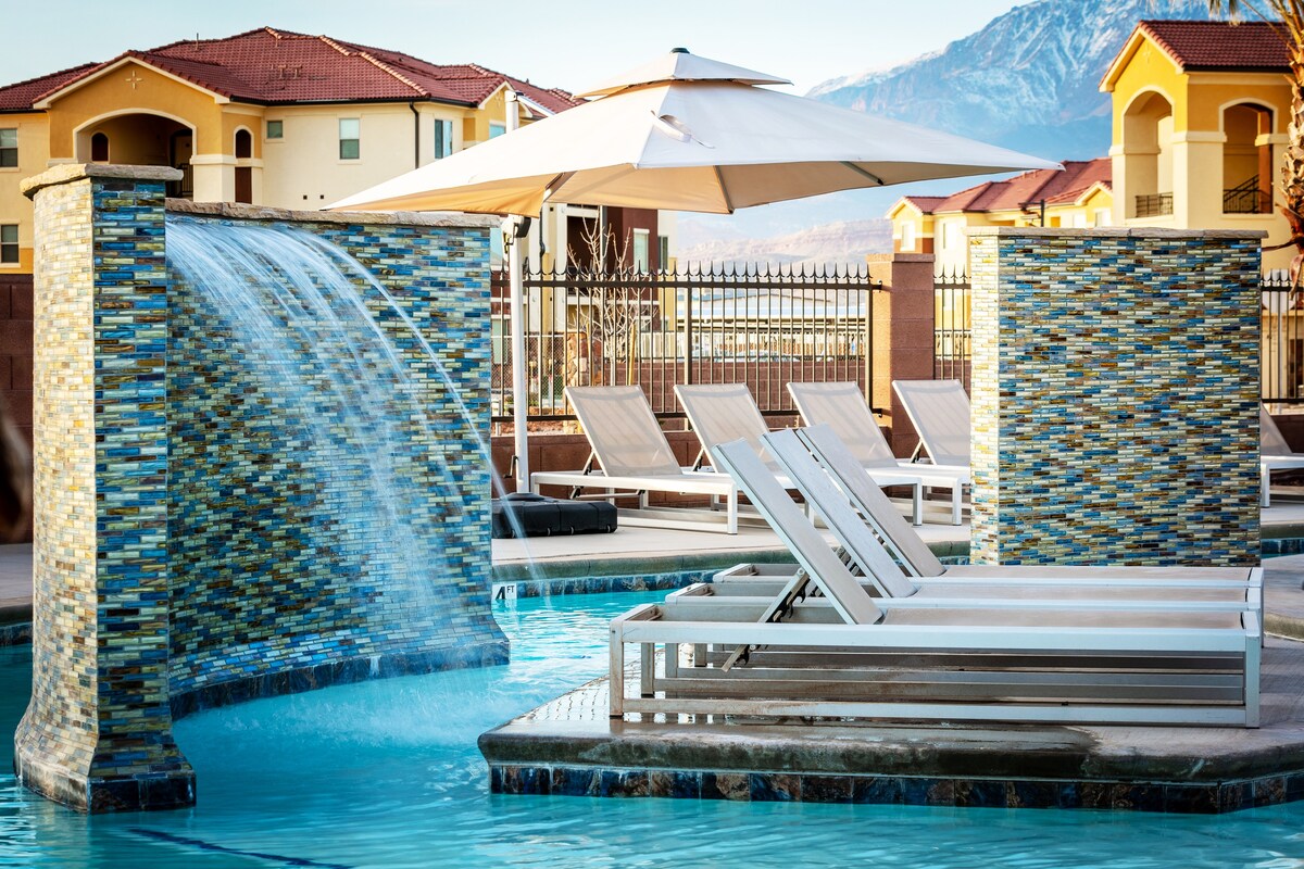 POOL & ALL AMENITIES ARE OPEN YEAR ROUND!!! The pool & hot tubs are also heated year round, except January 2026, which is a set time for repairs and renovations. We are 25 miles from Zion National Park & 7 miles from Sand Hollow reservoir. The waterpark, lazy river, pool, clubhouse, workout room, & additional amenities are included with your stay! 2025 bookers please note that the subdivision behind us has building underway. You may hear construction noise during your stay