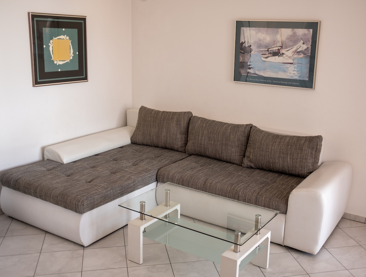 Ovaj svijetao i gostoljubiv stan ima dvije spavaće sobe s udobnim bračnim krevetima i dnevni boravak s kaučem na razvlačenje. Uživajte u svim udobnostima doma, uključujući kablovsku televiziju, klima-uređaj, potpuno opremljenu kuhinju, privatno kupatilo i prostranu terasu s predivnim pogledom na more, savršenu za opuštanje nakon dana provedenog na obali.