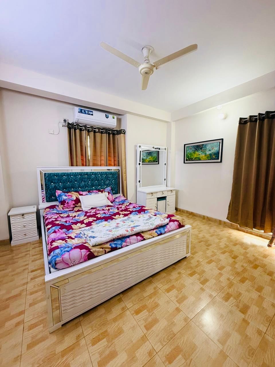 Ovo je dobro osvijetljen i novouređen veliki stan. To je tako blizu glavnih VIP područja kao što su Aerodrom, Diplomatska zona, Banani i Gulshan. Dobro održavan sistem čišćenja. Uređen je s 3 luksuzna kreveta u 3 sobe, klima-uređajem u svim sobama, pametnim TV-om s Wi-Fi vezom, frižiderom, mikrovalnom pećnicom, pročišćivačem vode, brzim Wi-Fi-jem 24/7, sofama, prostorom za čitanje, priborom za kuhanje, setovima za jelo, posteljinom, peškirima, dekama itd.