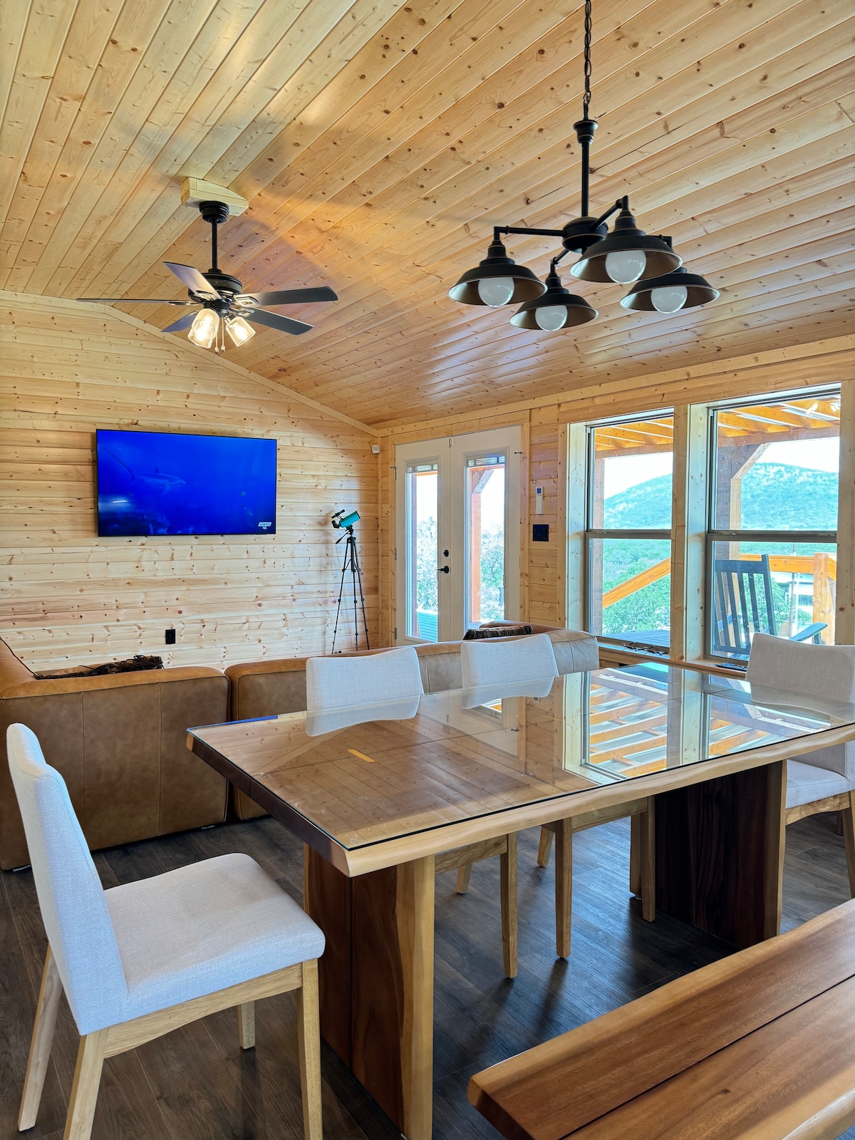 The Cabin is a acre located right on the beautiful Sabinal River with access to 600 feet of riverbank and easy walk into town. Arhitekta je dizajnirao, brvnara ima visoke plafone i mnogo stakla za ulazak na otvorenom. Opustite se u visećoj ležaljci ispod gigantskih čempresa. Uživajte u zalasku sunca dok jeleni prolaze kroz dvorište i plešu krijesnice. Imamo dvije spavaće sobe u prizemlju s malim potkrovljem (krevet za jednu osobu) iznad spavaćih soba.
