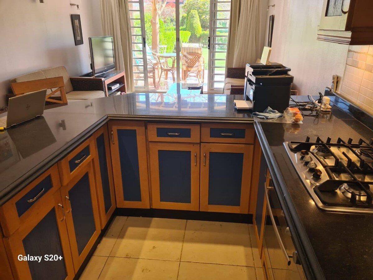 Luksuzna planinska kuća s pogledom na golf teren i privatnim vrtom | Ein Bay Ain Sokhna Luksuzna planinska kuća s 2 spavaće sobe u Ein Bay Ain Sokhni s privatnim uređenim vrtom i pogledom na mirnu lagunu. Savršeno za golfere, porodice ili parove koji traže miran odmor. Uživajte u potpunom pristupu sadržajima odmarališta, uključujući plažu, bazene i golf terene. Vrhunsko utočište koje nudi udobnost, privatnost i opuštanje, udaljeno samo nekoliko minuta vožnje od Kaira.