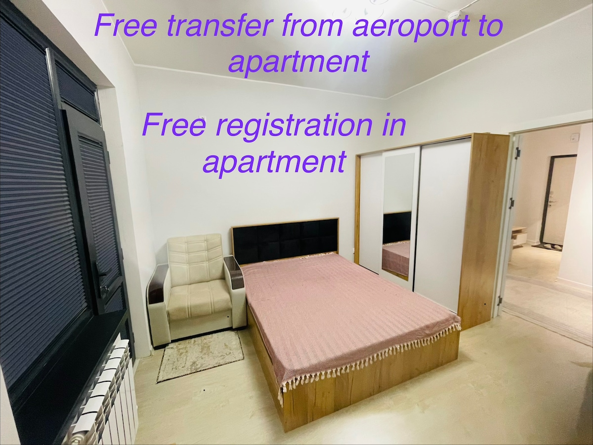 Добро пожаловать в уютную и светлую квартиру всего в 5 минутах езды от аэропорта! Это идеальное место для транзитных путешественников, командировок или коротких остановок в городе. Квартира находится на 6 этаже 9-этажного жилого дома и оснащена всем необходимым для комфортного проживания. Что вас ждёт • Уютная спальня с удобной кроватью • Кондиционер и отопление • Бесплатный Wi-Fi • Стиральная машина • Телевизор • Чистое постельное белье и полотенца • Самозаселение (если доступно)