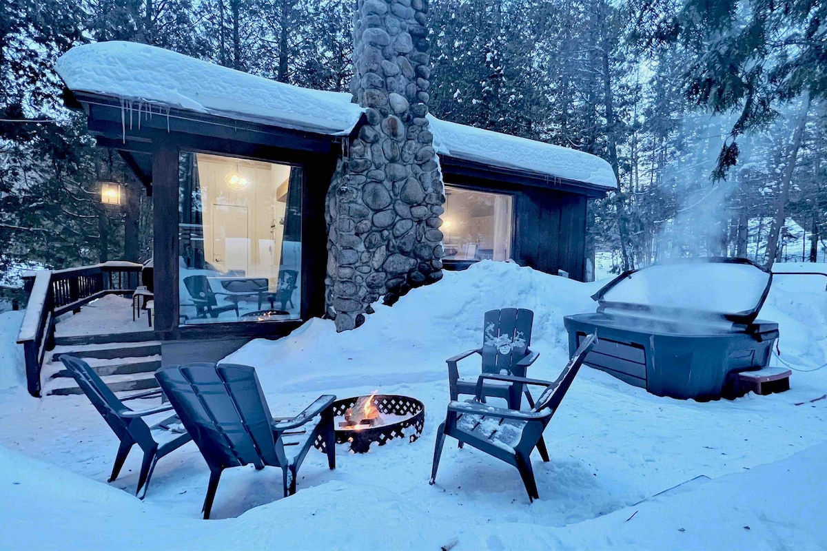 Uživajte u umirujućem učinku prirode boraveći u ovoj savremenoj planinskoj kući s obiljem prozora u srcu šume. Tremblant je prekrasan, bez obzira na godišnje doba. Sanjivo odredište na otvorenom, bit ćete udaljeni 8 minuta od Mont Blanca i 20 minuta od Montmblanta. Bilo za planinarenje, skijaško trčanje, vožnju kroz snijeg ili vožnju motornim sanjkama, staze su lako dostupne u svim smjerovima. Da ne spominjemo čuveni P'am Train du Nord udaljen 3 minute vožnje.