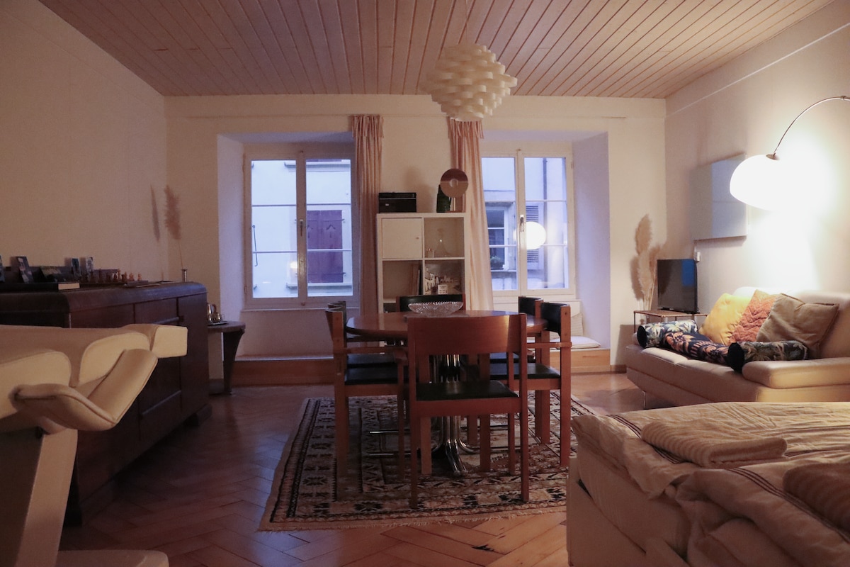 Diese einzigartige Unterkunft hat einen ganz besonderen Stil. Jugendstilvilla Baujahr 1912 mit grosser Terasse 20m2 und Garten befindet sich im Hochparterre eine grosse WG 80m2 mit allem was das Herz begehrt. Wir tragen Sorge zur Ambiente. Nahe dem Zentrum und trotzdem sehr ruhig gelegen. Eine Kirche in der Nähe , im Innern hört man allerdings nichts davon, ab 00:00 läutet sie nicht mehr. Die Wohnung ist sehr schön, gross ,sauber, hell und neu möbiliert. Fühlt Euch willkommen. Carpe Diem 🦋