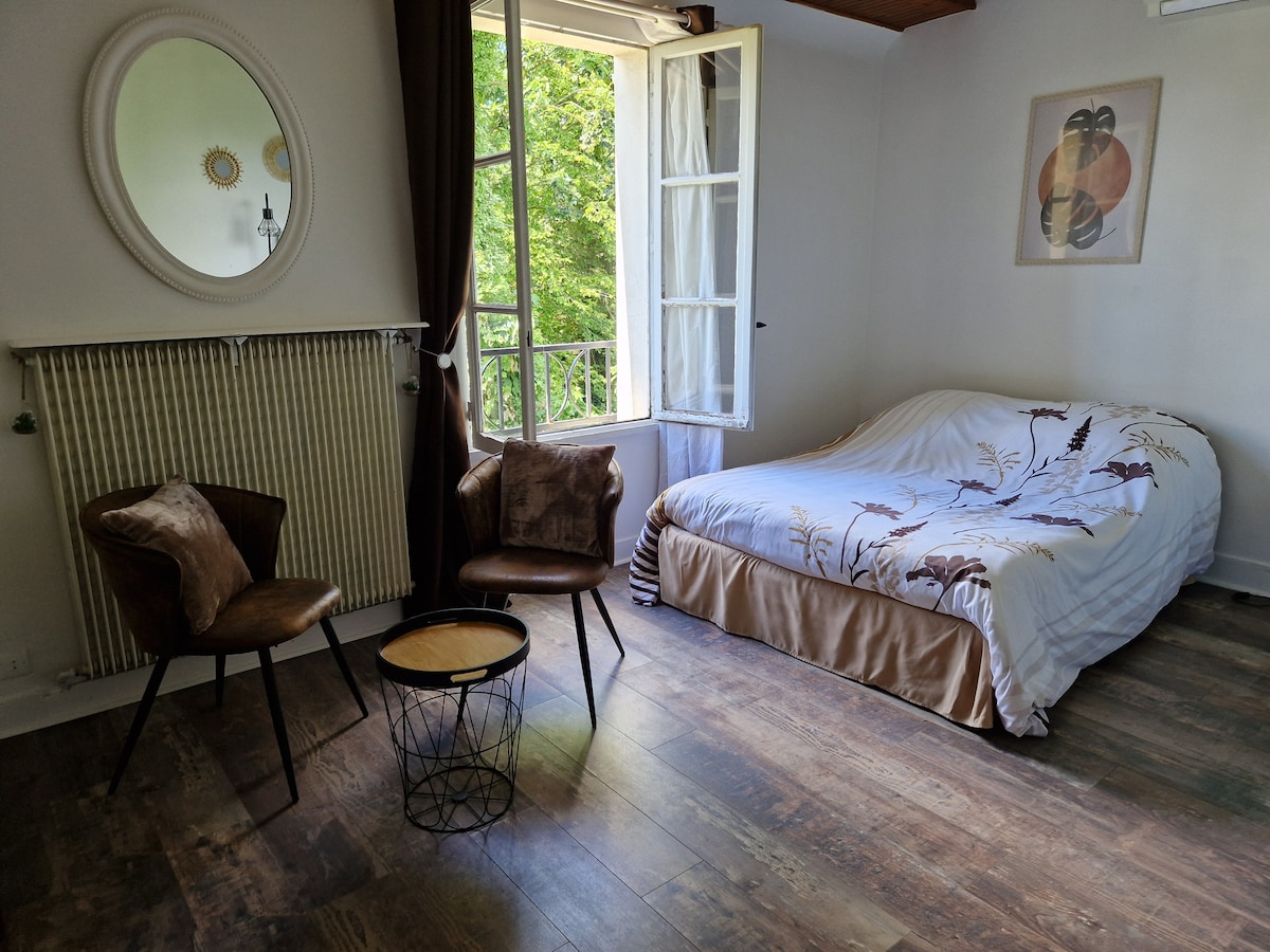 S mojim mužem smo željeli da ova soba bude „čahura”. Postavili smo ga i uredili kako biste se tamo osjećali dobro! Ona ne komunicira s ostatkom kuće, vrata su zaključana i dvostruko izolovana ! Ulazna vrata vaše sobe su nezavisna i imaju ključ. Spavaća soba se nalazi u stražnjem dijelu🏡 kuće i gleda na vrt🌱: Mali vrtni sto na terasi i čileanski kada sunce izađe na kraju nosa + mačke ako su afiniteti...