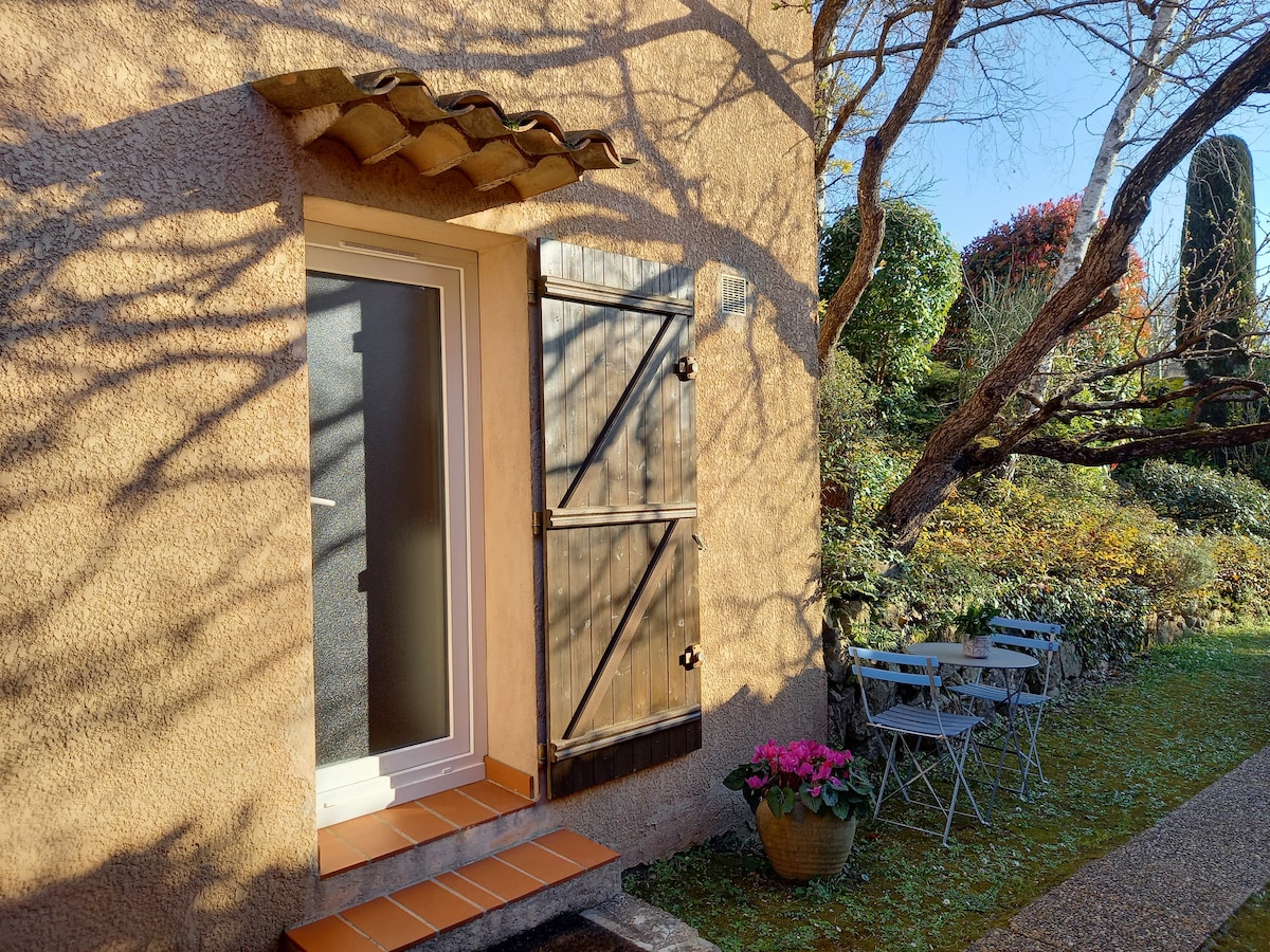 Petit STUDIO très bien équipée avec entrée et parking privé dans une grande Propriété avec piscine et jacuzzi chauffés du 10 avril au 30 octobre . La piscine extérieur et jacuzzi ainsi que le jardin sont partagés mais assez grand pour profiter chacun son espace de tranquillité . Je vis dans la bastide principale . Un Havre de Paix entouré d oliviers centenaires . A 35 minutes de l aéroport de Nice et divers villages provençaux et 14km de Cannes . Tele grand écran /abonnement Netflix