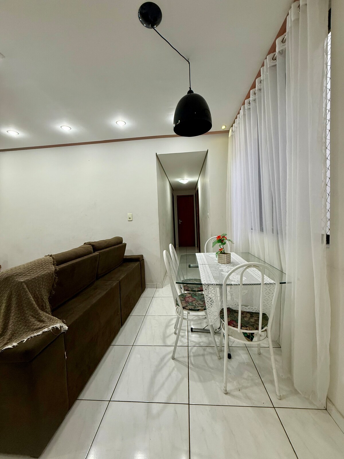 Potpuno klimatiziran, luksuzan, uređen apartman, 1 apartman s bračnim krevetom (160x200), super udoban madrac, 1 spavaća soba s još jednim bračnim krevetom (160x200). Zgrada s liftom. Blizu supermarketa, apoteke i pekare. 5 minuta vožnje automobilom do tržnog centra. Savršena lokacija za vas i vašu porodicu. Prihvatamo 1 kućnog ljubimca uz dodatnu naknadu od 50 BRL po noćenju.