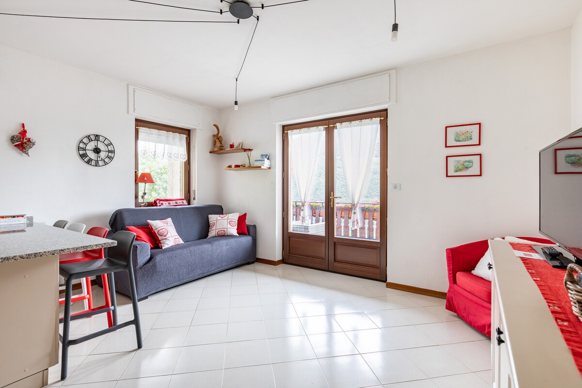 Ovaj dvosobni stan se nalazi u kući okruženoj zelenilom na prvom brdu Svetog Vincenta. Dvije stotine metara od termalnih kupatila i deset minuta hoda do centra grada. Nalazi se na gornjem spratu druge jedinice za iznajmljivanje. To je odličan smještaj za one koji traže mir i opuštanje, ali i polazna tačka za putovanja širom doline Aoste. S balkona se pruža prekrasan pogled na dolinu.