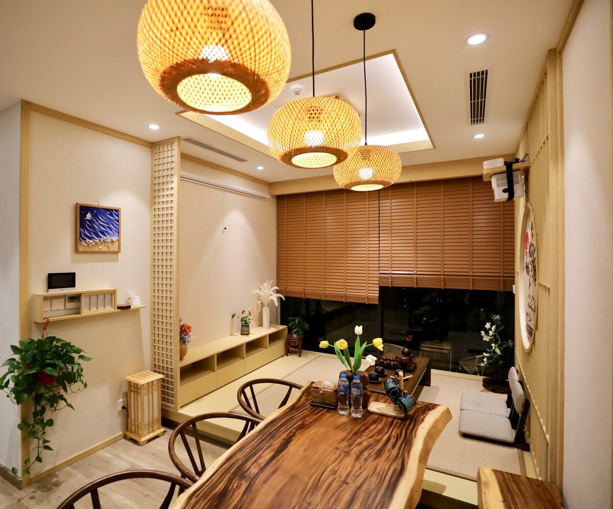 - 1BR apartment in Onsen Ecopark hot mineral subdivision; across Swan Lake central park: camping/kayaking/BBQ/Japanese Garden. - U sobi se nalaze kada i projektor. - Komunalne usluge: 02 sol elektrolitni bazeni u okolini cijena 120.000VND-130.000 VND/vrijeme; Besplatna teretana. Podrška za rezervisanje ulaznica za vruće minerale u Mori Onsenu s 50% popusta. – VRUĆE: Besplatne karte za kupanje u termalnom mineralnom kupalištu 02 Mori Onsen (koristite u vremenskom okviru od 9:00 do 13:00 sati od utorka do četvrtka) za rezervacije od 5 ili više noćenja (nije uključeno u druge promocije).