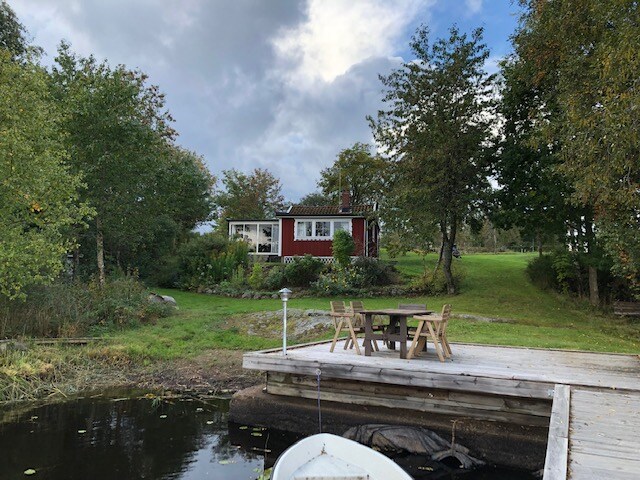 Upplev stillheten vid vår unika skandinaviska stuga, komplett med privat brygga och omgiven av tyst skog. Förutom huvudstugan, inkluderar din vistelse tillgång till en mysig gäststuga(med 4 sovplatser och egen kamin), perfekt för större sällskap. Njut av den klara sjöutsikten och återuppliva själen. Boka för en fridfull vistelse i naturens hjärta.