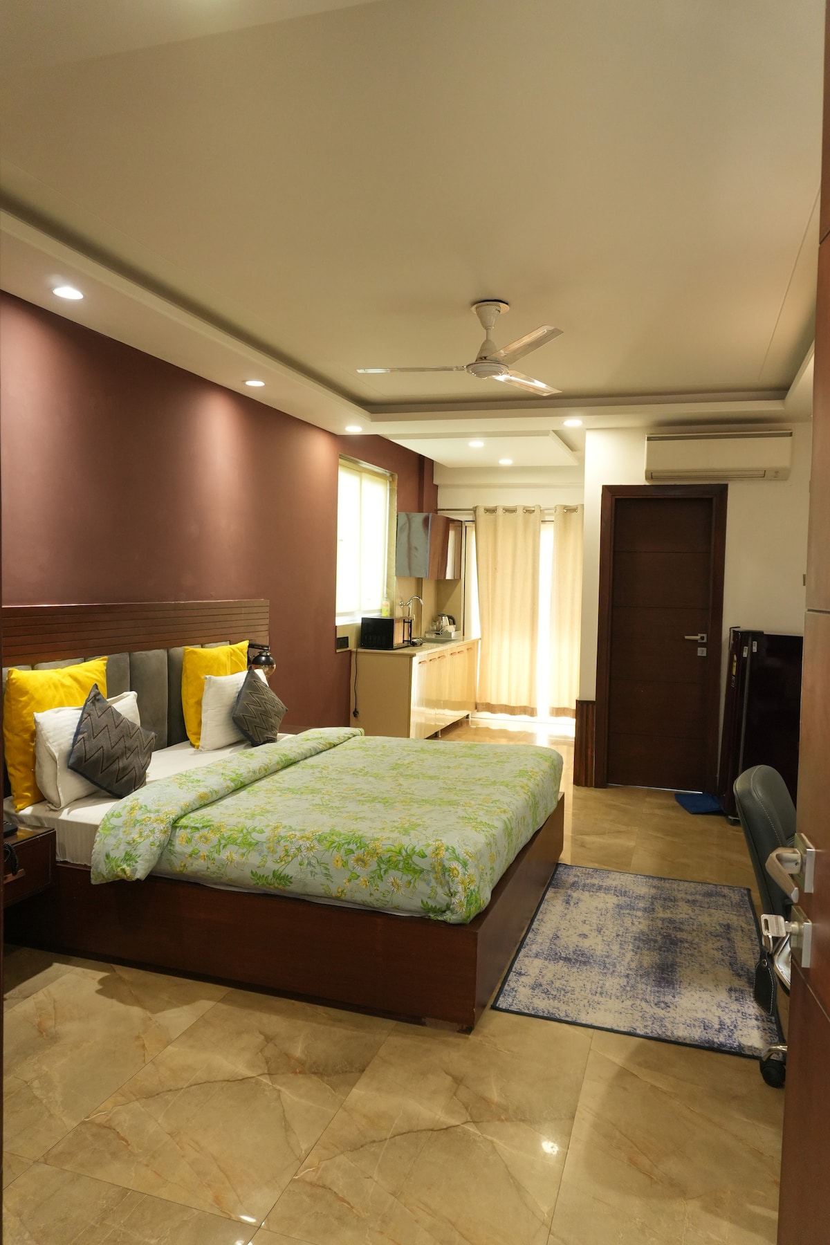 Upravlja stanovi Perch Service. Najbolje ocijenjeno gostoprimstvo nam je pomoglo da osvojimo srca naših gostiju i nekoliko nagrada od 2011. godine • Studio apartman srednje veličine s balkonom • Potpuno opremljena kuhinja (ploča za kuhanje, pribor za jelo, frižider, mikrovalna pećnica itd.) • Centralna kuhinja , soba za naručivanje i doručak • Doručak je dostupan po cijeni od 295 Rs +GST po osobi. • Teretana i salon za goste s velikim pametnim TV-om • 5 minuta hoda do trgovačkog centra Ambiance Mall & DLF Cyber City • 500 mts do stanice metroa Moulsari Ave