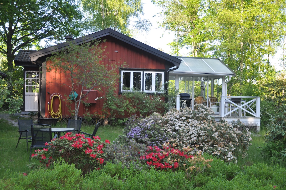 Ova švedska seoska kuća je utočište. To je savršeno mjesto za opuštanje u blizini prirode. Ima drvenu peć, lijepu otvorenu kuhinju, dnevni boravak i spavaću sobu sa staklenim vratima koja se otvaraju na veliku terasu s privatnim vrtom. Spavaća soba ima veliki bračni krevet i mogućnost dječjeg kreveta. Postoji vrlo udobno kupatilo s kupatilom. Prekrasne šume, jezera, igralište, pekara (otvorena petkom) i regenerativna farma povrća nalaze se odmah iza ugla. PN: Ograničen javni prevoz
