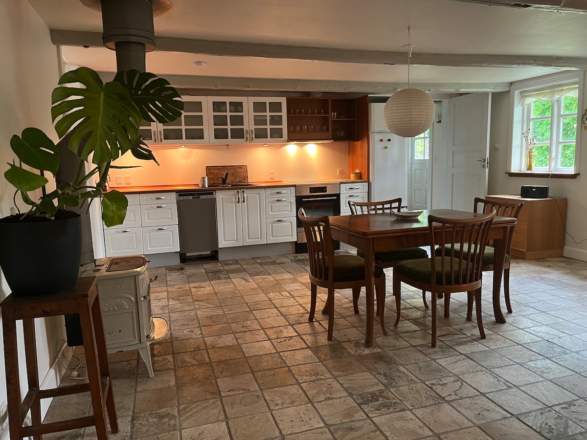 Mala drvena seoska kućica koja se nalazi u velikom parku i bujnom vrtu, privatna i odvojena od glavne kuće, samo nekoliko minuta do velike šume, lijepih plaža i šarmantnog grada s trgovinama, kafićima i restoranima i u blizini voza. Ima jednu glavnu sobu s dva kreveta, zasebnu kuhinju za jednostavno kuhanje i kupatilo. Terasa ima krov i okružena je cvijećem, drvećem i grmljem. Prikladno za romantični odmor.