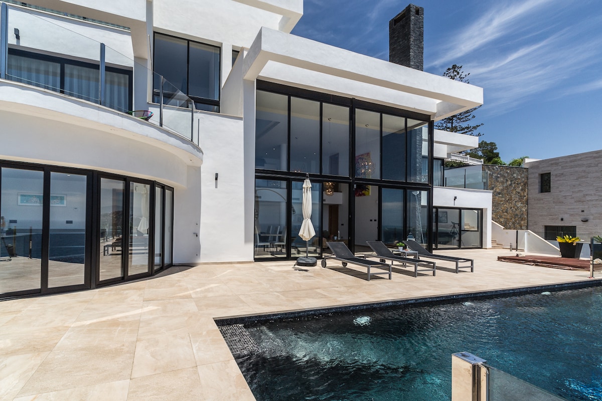 Tražite opuštajući odmor na španjolskom putu? Rezervišite ovu prekrasnu sunčanu kuću sada! - 5 spavaćih soba - 4 bračna kreveta, 1 krevet na sprat, krevet na razvlačenje, krevetić - 3 kupatila - Klima uređaj s toplom/hladnom vodom - Pregledi, pogledi, pogledi! - Zajednički bazen (bez grijanja) otvoren tokom cijele godine, privatni jacuzzi (vruć koliko god želite) - Vrt i terase s ležaljkama, visećim ležaljkama, ležaljkama, roštiljem - Potpuno opremljena kuhinja, mašina za suđe, mašina za pranje veša - Wi-Fi, TV sa satelitskim programima od 42”, kućni bioskop - Garaža za 2 automobila i dodatni parking ispred garaže