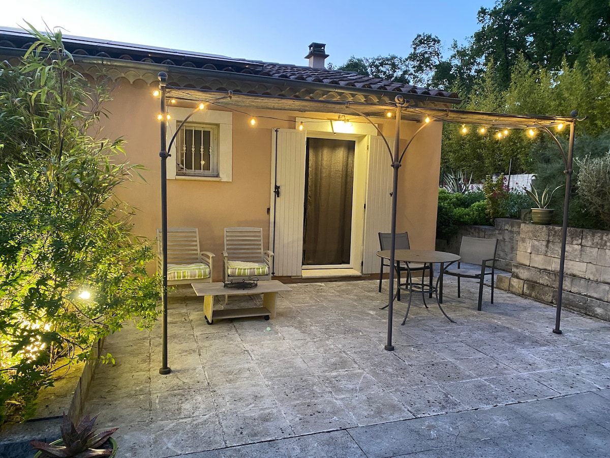 Zaboravite na brige na ovom prostranom i mirnom mjestu! Velike, zatvorene, sigurne zelene površine vas čekaju na opuštajućem zaustavljanju u planinama Vaucluse i zemlji Sorgues. Na raspolaganju: - Italijanski tuš i prostrani sanitarni čvor - velika potpuno opremljena kuhinja ( rerna, mikrovalna pećnica, mašina za suđe, frižider...). - velika spavaća soba s bračnim krevetom - Velika dnevna soba - prostor za čitanje na verandi - dvije terase (jedna na sjeveru, jedna na jugu) - privatni i siguran parking