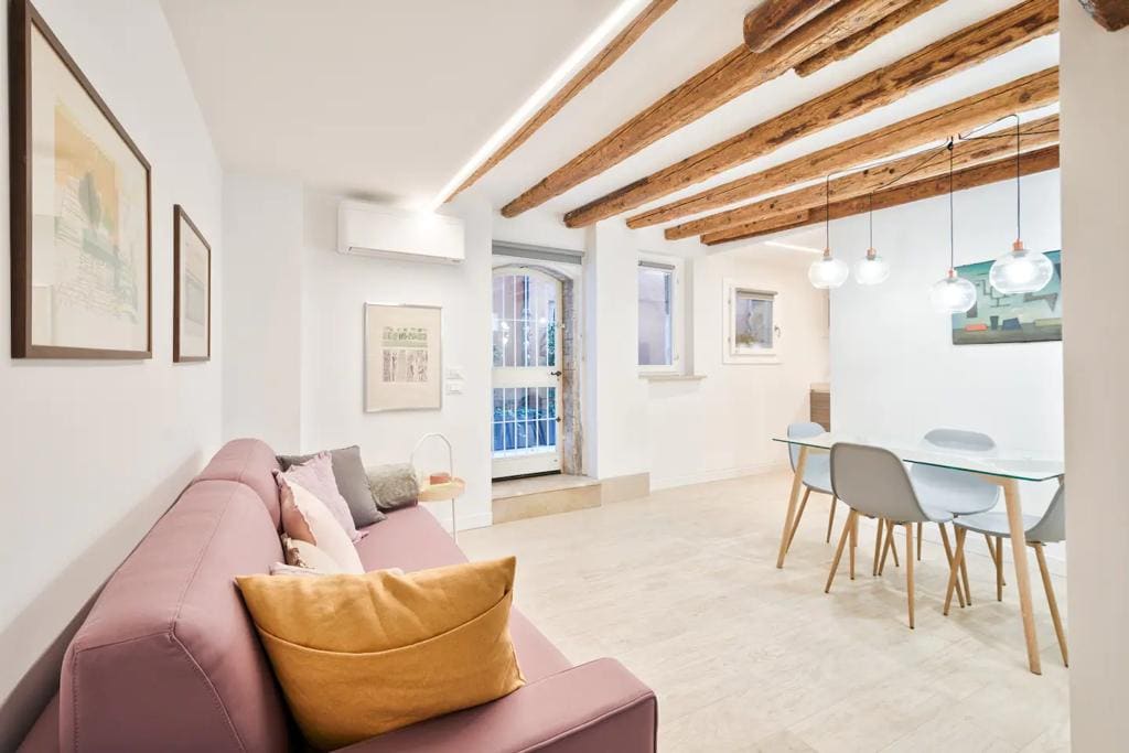Novouređeni stan koji se sastoji od jedne spavaće sobe, kupatila, kuhinje, dnevne sobe i privatnog namještenog dvorišta. Stan je opremljen udobnošću kao što su: 2 pametna televizora, frižider, pećnica, mašina za suđe, sušilo za kosu, Air-Con i WI-FI. Stan se nalazi 8 minuta hoda od mosta Rialto i 15 minuta hoda od trga San Marco. Željeznička stanica je udaljena samo 5/6 minuta od stana. Najbliži supermarket je također udaljen 4 minute hoda od stana.