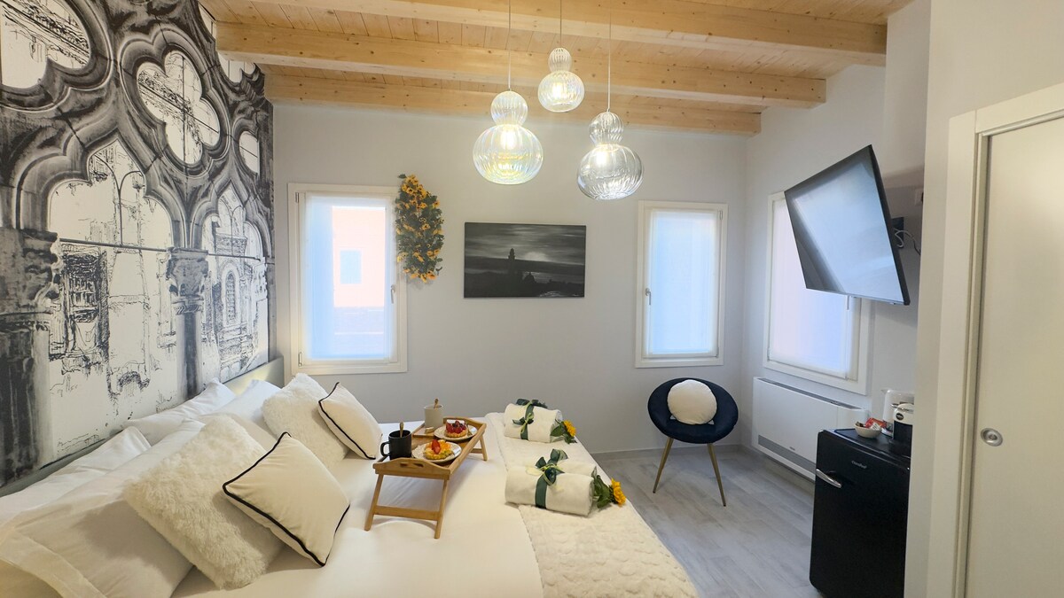 The Venezia Room is one of the three cozy accommodations offered by B&B Antenna 2, located in the heart of the historic center of Chioggia, a few steps from the canals, markets and typical restaurants of the area. This spacious room is ideal for families or small groups, thanks to the presence of two comfortable and well-arranged double beds . The large and modern private bathroom is equipped with a shower, sink, bidet and toilet , ensuring maximum comfort and convenience during your stay.