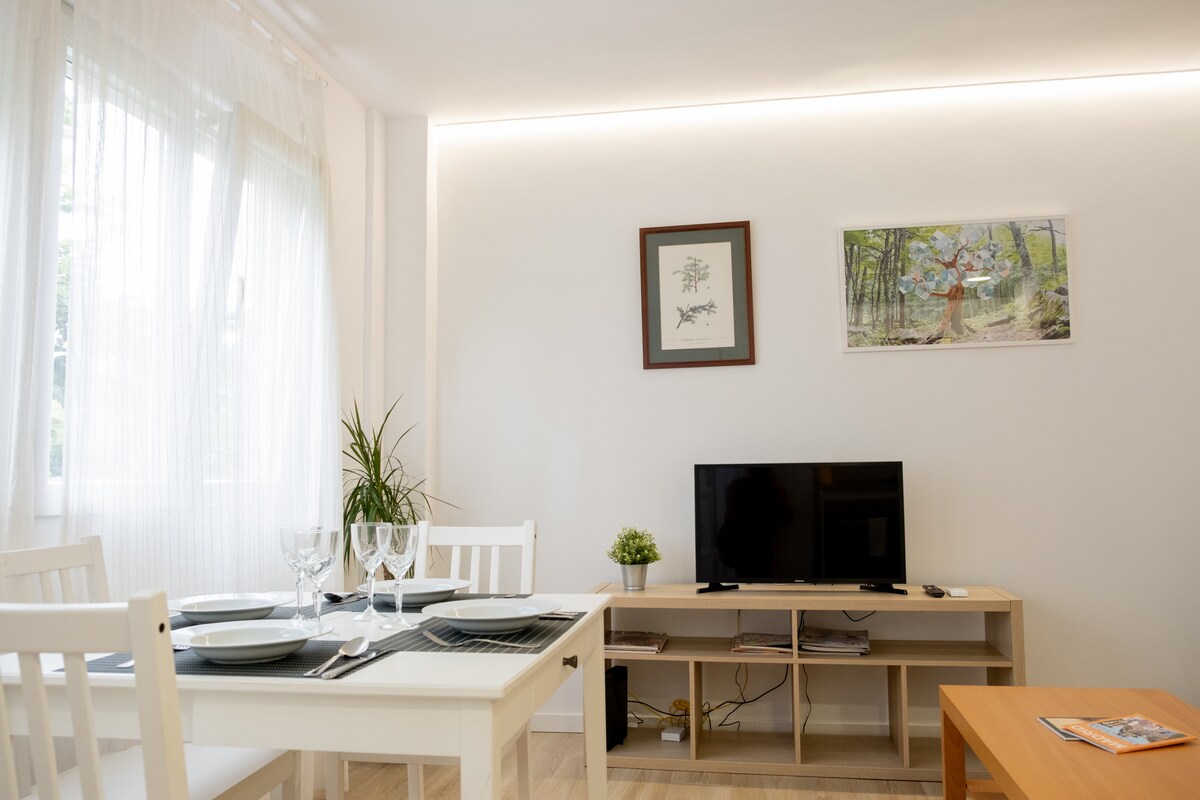 Stan na nivou ulice. Idealno za poslovna putovanja, studijska putovanja, medicinske stvari itd. s keramičkom pločom za kuhanje, frižiderom, mašinom za pranje/sušenje veša, mašinom za suđe, pumpom za topli/hladni zrak, mikrovalnom pećnicom, Nespresso, kompletnim kuhinjskim priborom, kuhalom za vodu, bračnim krevetom, kaučem na razvlačenje 190x150, pametnim TV-om, Wi-Fi mrežom, alarmom, direktnom linijom metroa do Sol (15”), velikim kupatilom, kišnim tušem, automatskim dozatorima za gel. Vrt, vrlo jednostavan parking, s dva dječija igrališta s ljuljačkama