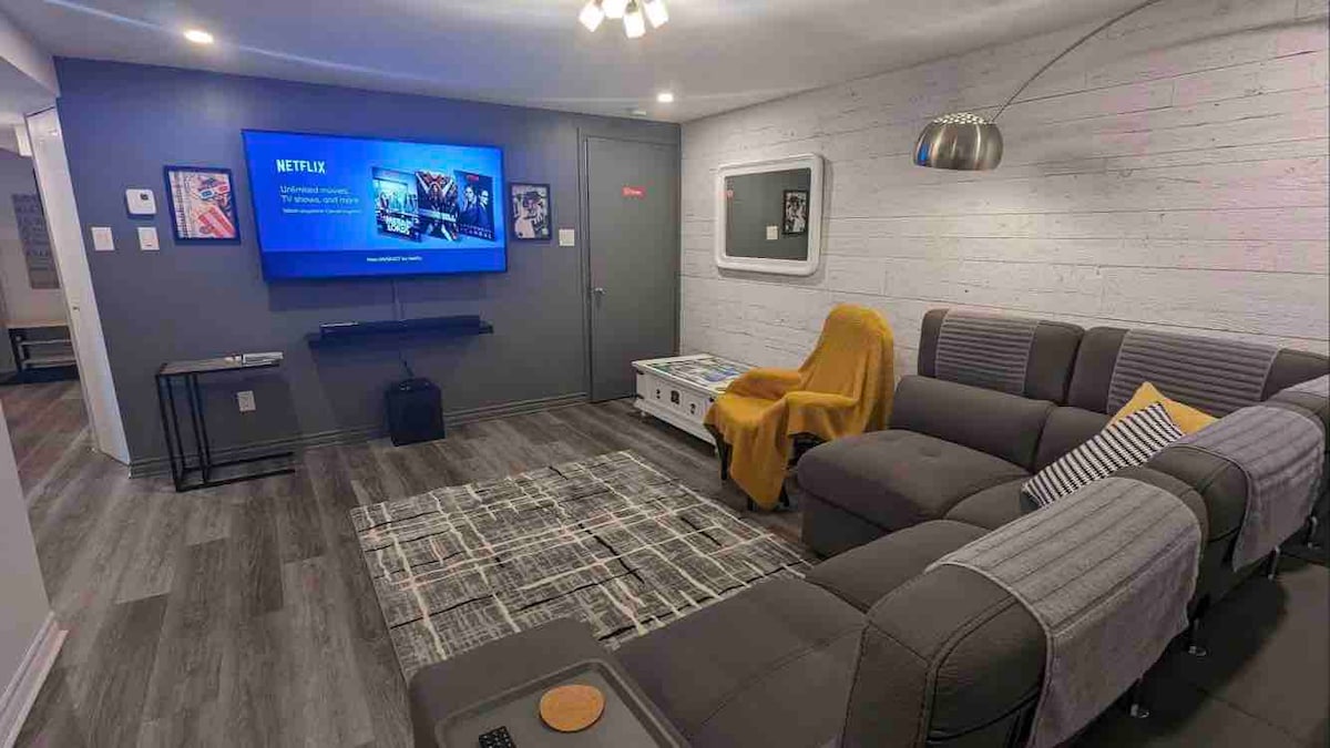 Modern Comfort near YUL Airport! This stylish retreat is just 15 minutes from YUL, offering a haven of modern comfort. You'll find everything you need for a relaxing stay, including a fully equipped kitchen to unwind in after a long day. Sit back, enjoy a complimentary cup of coffee or tea, and watch your favorite Netflix show. Book now and experience the perfect blend of convenience and style.