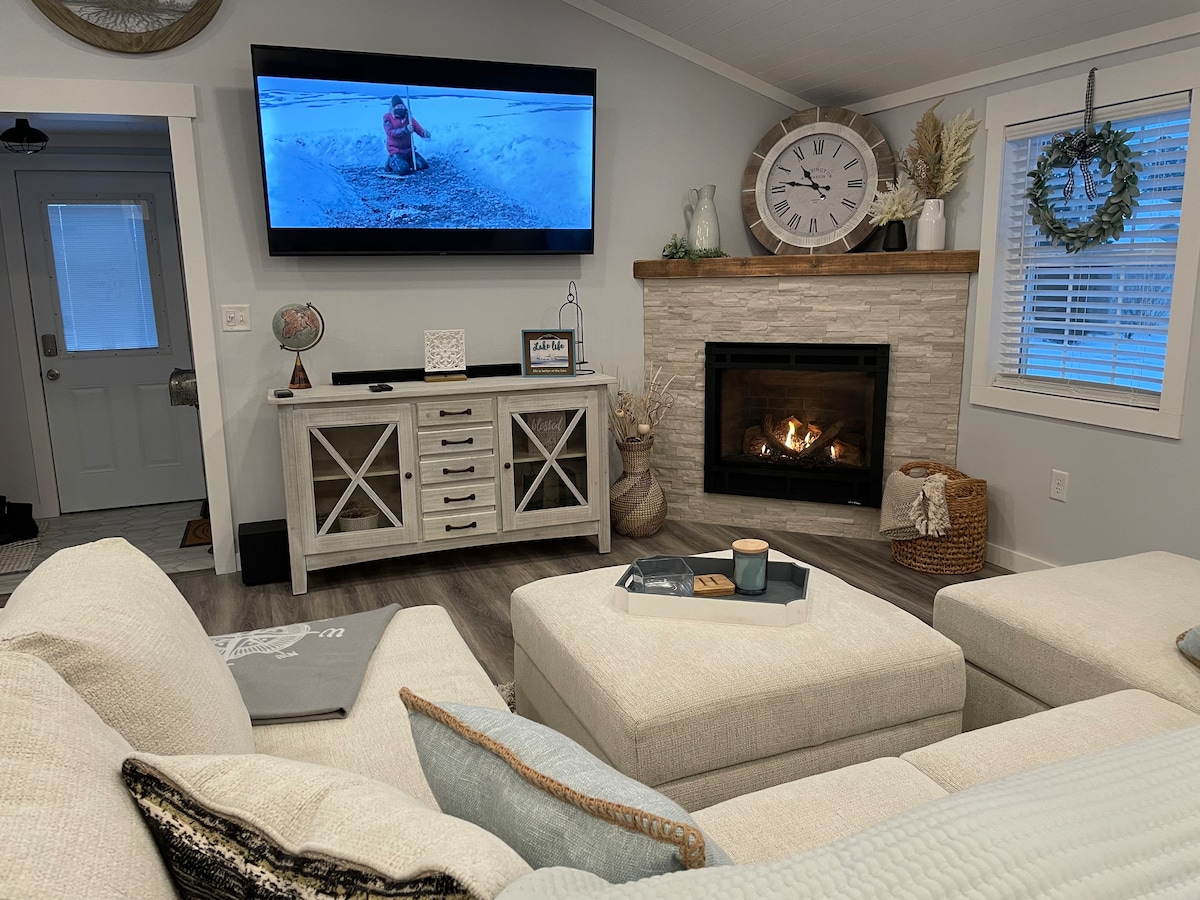Odsjednite u našoj porodičnoj seoskoj kućici u kojoj ste korak do vode, Pancake House, sladoled, Lake House Casino, plaža, park, restorani i sve što nudi Sylvan Beach. Iznajmite pontoon, kajak ili bicikl u Sylvan Beach Supply Co. Odmorite se u prostranom glavnom bračnom krevetu s pogledom na jezero. Ili odaberite bračni krevet (širine 150-179 cm) ili dva bračna kreveta (širine 150-179 cm). Trpezarija 10 plus 4 barska stolca. 2 kupatila. Potpuno opremljena kuhinja, klima uređaj, ventilatori, grijanje, Wi-Fi, 2 Roku televizora, igre i kamin za korištenje tokom cijele godine. Vrijeme je za jezero!