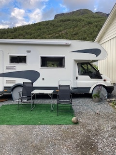 Dobro došli u našu udobnu kamp-prikolicu! Iznajmljujemo ga samo za smještaj i ne može se premjestiti. Kamper je savršeno smješten usred svjetski poznatog fjordskog sela. Ovdje se možete probuditi uz spektakularan pogled na vodopad Brekkefossen i veličanstvene planine oko njega. Kamp prikolica se nalazi na građevinskom terenu i potrebno je oko 10-15 minuta hoda do centra Flåma. Srdačna dobrodošlica!