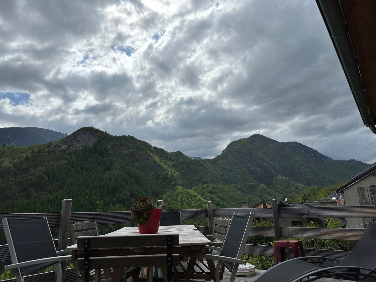 Ovaj smještaj ima jedinstveni stil. Dođite i otkrijte ovu netipičnu klimatizovanu seosku kućicu, sa svojom spavaćom sobom u brvnari, katamaranskom mrežom, tuš kabinom za svjetlosnu terapiju, grijanom vanjskom kadom i panoramskim pogledom na lanac Pirineja. Smješteni na raskrsnici dolina, bavit ćete sve planinske sportove. Mnoge srednjovjekovne, praistorijske i kulturne znamenitosti su tu za vas.