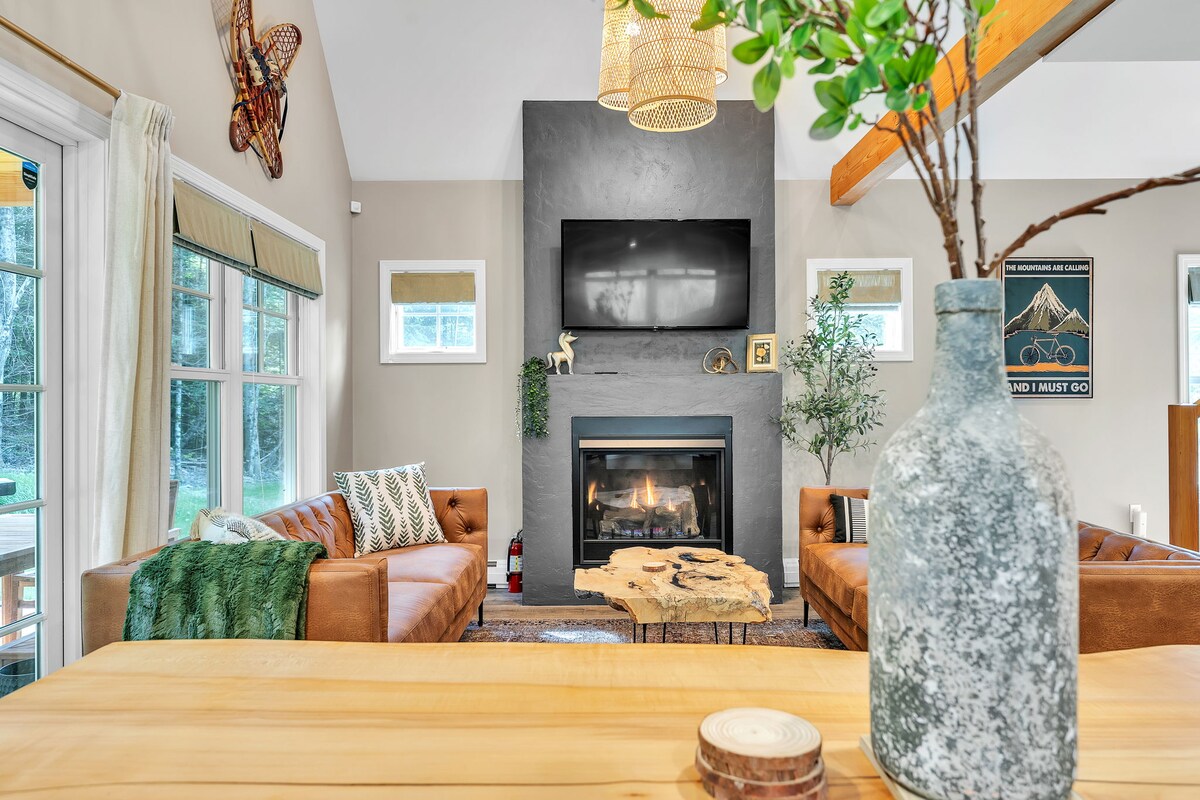 Proljetno skijanje! Popust od 20%d na Sugar and Snow! Mart je vrijeme javorovog šećera i sezone OBILNIH snježnih padavina u Bretton Woodsu (udaljenom samo 20 minuta). Luksuzna seoska kućica uz privatno jezero s hidromasažnom kadom, vanjskim kaminom, plinskim stolom za loženje i besplatnim vinom, potpuno opremljenom kuhinjom, finim porculanom, novim tušem, jacuzzi kadom, električnim kaminima i dva radna prostora. 27 hektara + kilometri staza do obližnje državne šume, ovo je savršena baza za skijanje u vrhuncu sezone i mirne zimske avanture. Psi su dobrodošli!