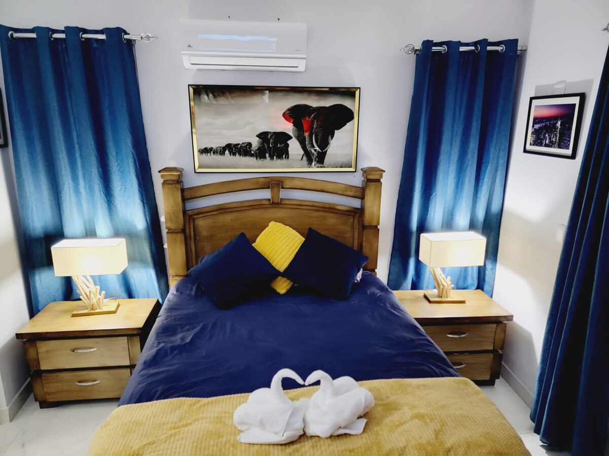 Stan u blizini UTESA, UAPA, Reserve Bank Cluba i Gurabito Country Cluba. Veliki dnevni boravak s radnim prostorom, dvije klimatizovane spavaće sobe, potpuno opremljena kuhinja, topla voda, parking, ogradica za igru i stolica za hranjenje. 15 minuta od aerodroma.