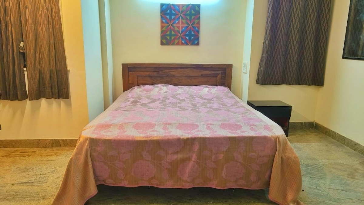 Dovedite cijelu porodicu u ovaj odličan smještaj s mnogo prostora za zabavu. Šta dobijate: • Dodatni doručak. • Usluga čuvara s prtljagom, smjestite se i redovno čistite. • Siguran prostor u srcu KalyaniNagara usred prirode. • Prostor za kuhanje, TV, Wi-Fi i srednja šolja čaja ujutro. • Dobijate jedan bračni krevet u glavnoj spavaćoj sobi i kauč na razvlačenje u dodatnoj sobi. Udaljen je 5 minuta od aerodroma i 8 minuta od tržnog centra Phoenix.