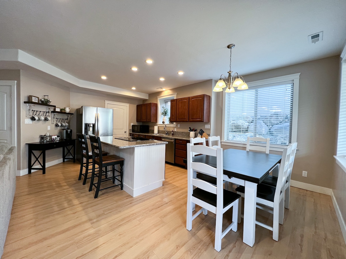 ** PRIJE REZERVISANJA PROČITAJTE OBJE OPCIJE IZNAJMLJIVANJA.** Ovaj prekrasan i slikovit smještaj pruža vam pristup do 4500 kvadratnih metara savršenog smještaja i može primiti do 16 gostiju! Veliki prozori gledaju na slikoviti 17. plovni put golf terena Sleepy Ridge, jezera Utah i planina. Neobavezna igraonica je uključena u najam podruma. Naš dom je u blizini BYU-a, SLC-a i Park Cityja. Ovo je savršena lokacija za velike porodice/poslovna putovanja koja žele udobno boraviti pod jednim krovom!
