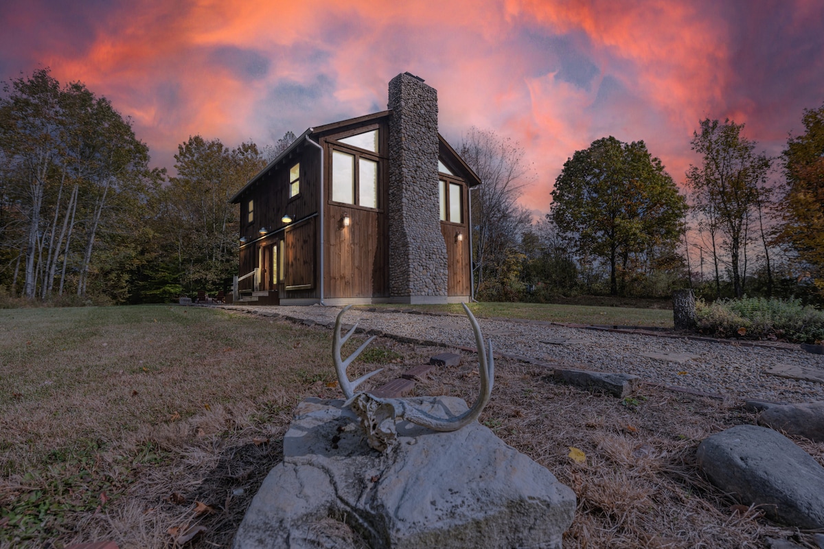 Pobjegnite u ovu potpuno novu zgradu; modernu brvnaru sa svime što vam treba za luksuzan odmor u šumi. Kratkom vožnjom od 10 do 20 minuta do glavnih atrakcija Hocking Hillsa - Ash Cave, Cedar Falls i Old Man 's Cave, ova brvnara je savršeno mjesto za opuštanje s voljenom osobom. Smješten na 5 hektara i još 1 brvnara, moći ćete uživati i u stazama na imanju. Ova brvnara je dizajnirana s modernim detaljima i zidom s prozorima koji će vam pružiti prirodu!
