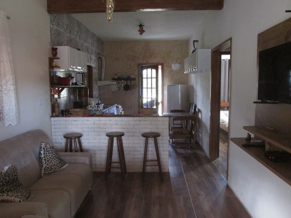 Casa com três quartos sendo uma suíte. Cozinha americana, sala, com varanda na frente. Casa com cozinha equipada com fogão, geladeira com utensílios de cozinha . Com agua quente em todas as torneiras e chuveiro interno.