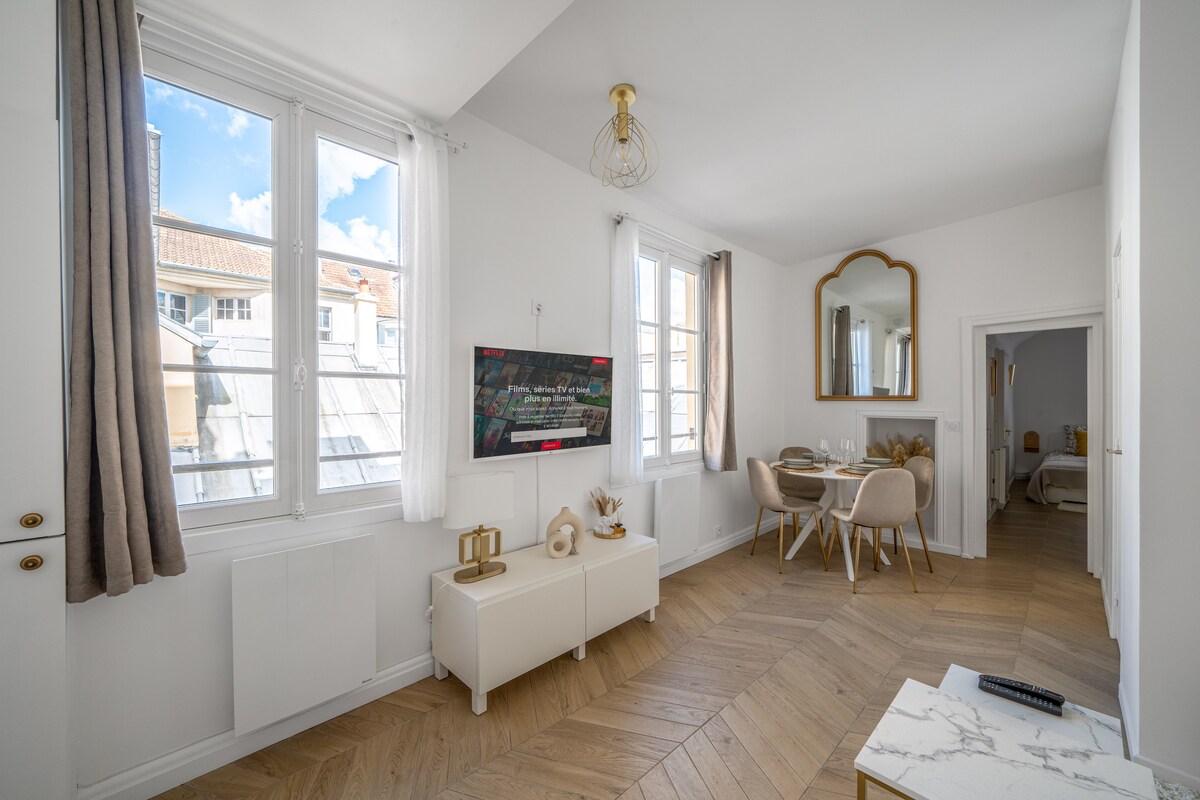 Prekrasan luksuzni stan koji se nalazi na 1. spratu historijske zgrade, idealno smješten u glavnoj ulici Versaillesa, na 5 minuta hoda od dvorca, s mješavinom prekrasnih trgovina i svih sadržaja na pragu. Nedavno renoviran, uključujući zvučnu izolaciju, stan se nalazi odmah pored Place du Marchéa, sa svojom poznatom pijacom, kafićima i restoranima. Sve željezničke stanice su u blizini, povezuju se s Parizom za samo 20 minuta!