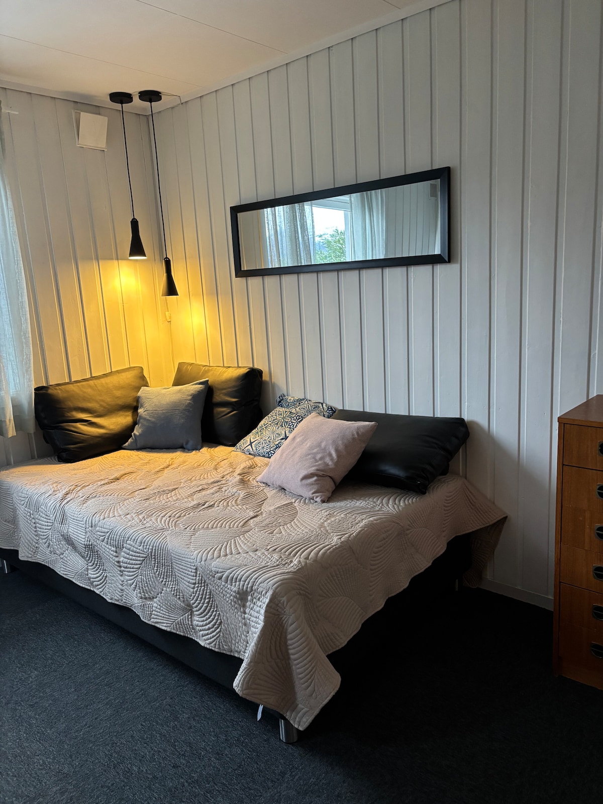 Lys og moderne leilighet sentralt i Volda, midt blant de mektige Sunnmørsalper. Umiddelbar nærhet til sjø og fjell, og kort vei til kjøpesenter og restauranter m.m. Det er et soverom med dobbeltseng (150x200), plass til to personer. En tredje person blir sovende på stua på luftmadrass, evt på sofaen. Hjemmet er utstyrt med det meste man trenger. Her er TV med chromecast, brettspill og bøker for både store og små. Gratis WiFi og parkering. Kort vei til flyplass, kun 12 min unna leiligheten.