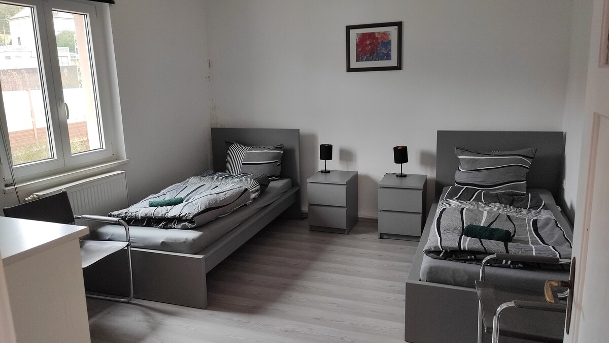 Živite u novouređenom stanu u potkrovlju ispunjenom svjetlošću sa 70 kvadratnih metara i potpuno opremljenom kuhinjom. Dodatne ponude: - Pokriveno skladište za bicikle koje se može zaključati - Korištenje ograđenog vrta - Parking u blizini kuće - Udoban krevet za goste - Usluga hljeba - Puni frižider na dan dolaska - Mašina za pranje / sušenje veša Lokacija: - 10 minuta hoda do željezničke stanice - mirno stambeno područje - Nalazi se u centru grada, do centra grada se može doći pješice