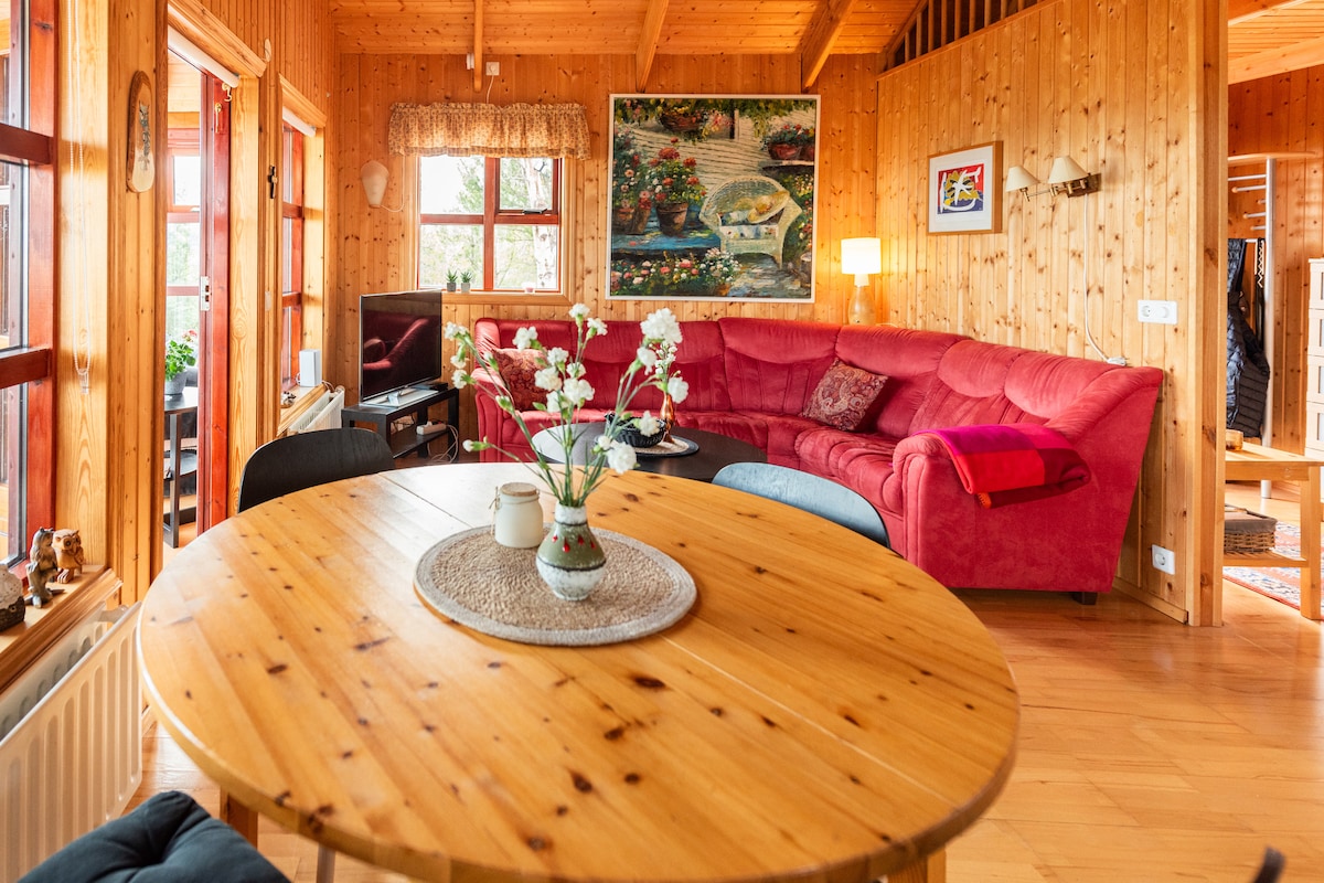 Kuća za odmor je vrlo udobna i ima podno grijanje. Maksimalno 7 osoba može prenoćiti. Kuhinja je opremljena modernim bijelim posuđem i svim potrebnim sadržajima za kuhanje. Izvan sobe za sjedenje nalazi se terasa gdje pogled oduzima dah, a zimi je dobra prilika da budete svjedok nevjerovatnim sjevernim svjetlima! U kući za odmor postoji besplatan pristup Wi-Fi mreži. Jahanje je dostupno uz ličnu uslugu.