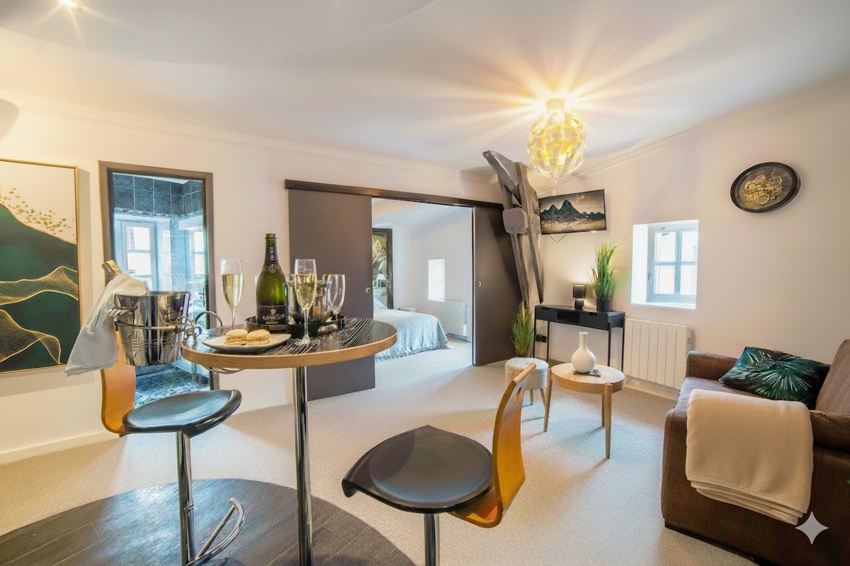 ✨ Odsjednite u pažljivo renoviranoj bivšoj vili u srcu starih Tullinsa. Historijski šarm i moderna udobnost: Vrhunski bračni krevet, brzi Wi-Fi, Netflix i Disney+, opremljena kuhinja, besplatna teretana, privatni parking pred vratima. Samostalni dolazak 24. Doručak Royal & Express na zahtjev. Idealno za romantični vikend, poslovni boravak ili sporo zaustavljanje. 23 minute od Grenoblea – 6 minuta od željezničke stanice. 🌿 Opustite se. Mi ćemo se pobrinuti za ostalo. Dobro došli kući 🖤