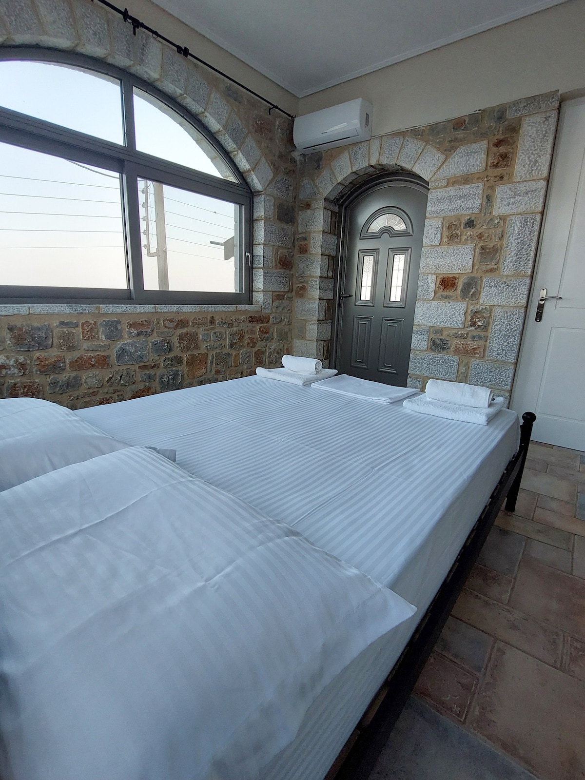 Located in a historic building in the centre of Gythio, this recently renovated loft apartment has been decorated in a country minimalist style. Extra attention has been taken to choose comfortable mattresses, pillows and bed linen. It is bright, spacious and air conditioned, and it’s just steps away from grocery stores, restaurants, pharmacies, playgrounds, bus stops and Githio’s romantic boardwalk. Let this clean, comfortable apartment be your home base in beautiful Githio!