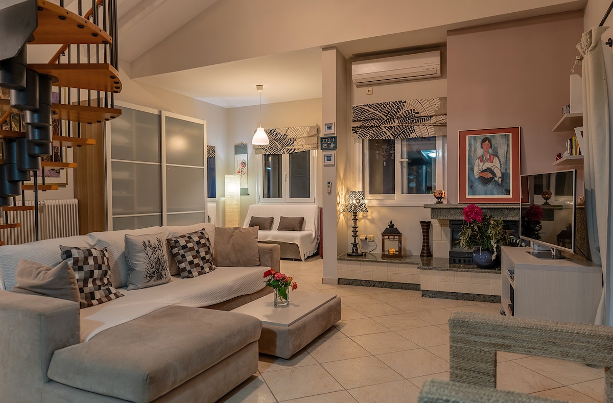 Otkrijte vrhunsko opuštanje u tradicionalnoj kući s panoramskim pogledom na selo, ravnicu i planine. Uživajte u trenucima u cvjetnom vrtu, s vanjskom kuhinjom, vanjskom kadom i tabureom za opuštanje. Idealno za parove, porodice ili rad na daljinu. Potpuno opremljen, s biciklima za vožnju, pristupom plažama u roku od 25 minuta, tavernama i stazama u prirodi.