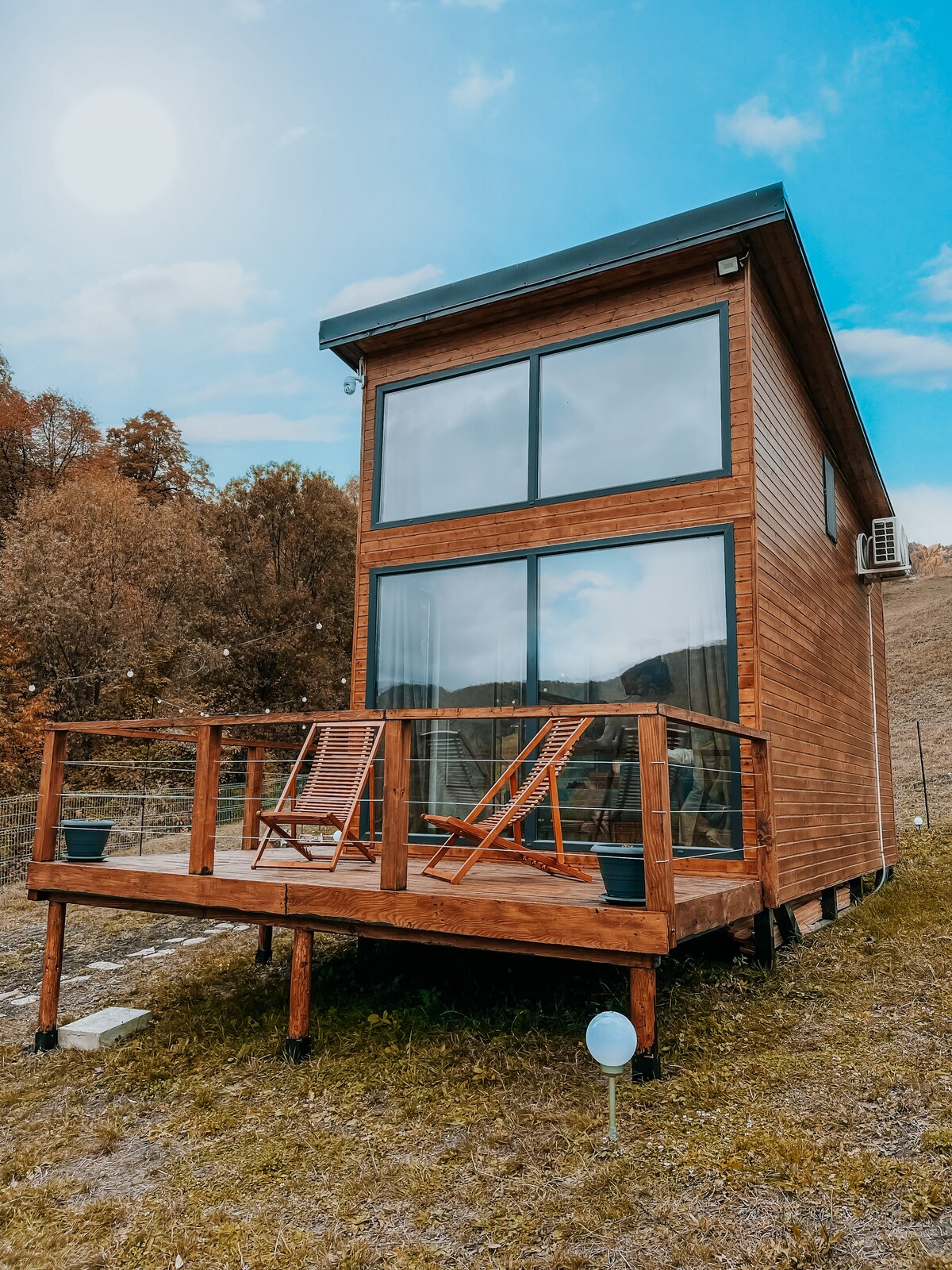 Un resort de case in forma de A situat in frumoasa zona montana Gresu din judetul Vrancea reprezinta oaza de liniste si relaxare, departe de stresul cotidian. Acest complex unic este compus din 6 case moderne si confortabile, construite in stil traditional montan ce se integreaza in peisajul natural uimitor. Fiecare casa ofera un interior amenajat cu gust, echipat cu facilitati moderne, si o terasa panoramica pentru a savura privelistea spectaculoasa a muntilor Vrancei.