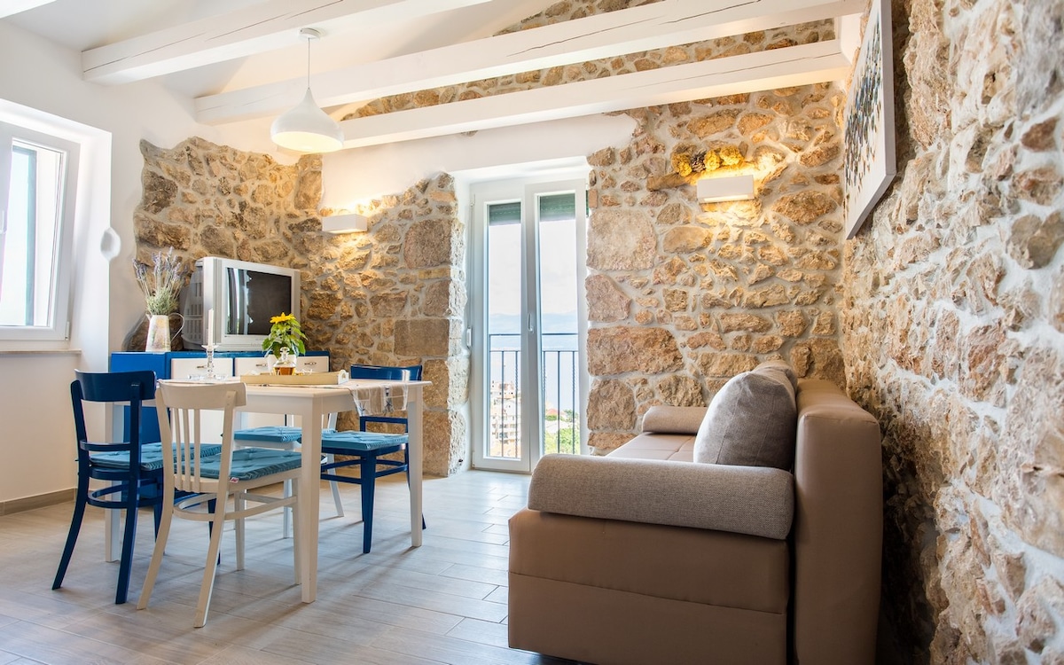 Apartman se nalazi u kamenoj kući u srcu starog grada Vrbnika. Kuća je nedavno renovirana u modernom stilu sa dozom zainteresovanih detalja. Prostor je u potpunosti opremljen svime što mislimo da bi vam moglo zatrebati tokom boravka ovdje. Radujemo se vašem dolasku i nadamo se da će vam naše mjesto biti dom. Uživajte u boravku na 10 minuta hoda od plaže i samo nekoliko minuta od restorana, supermarketa, pekare i kafića.