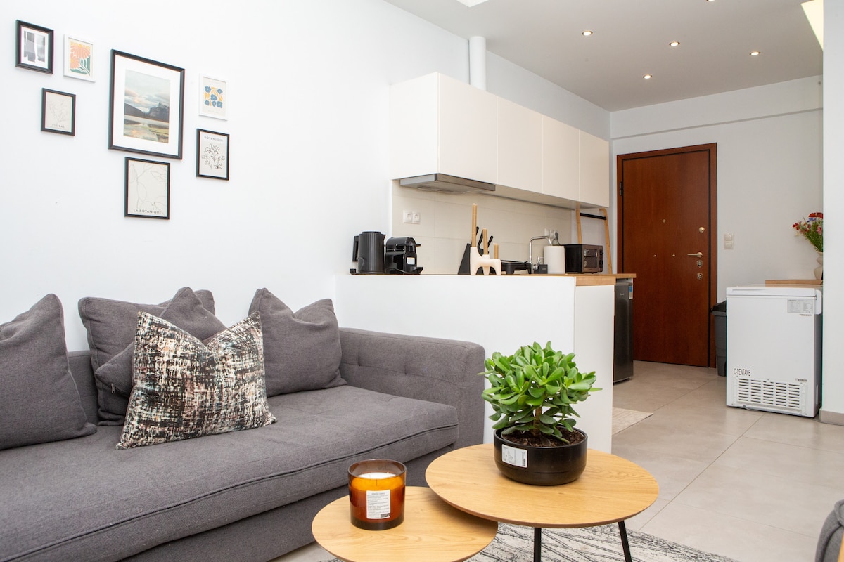 Šarmantni stan ima udobnu dnevnu sobu, mirnu spavaću sobu i potpuno opremljenu kuhinju. Opustite se u prostranom kupatilu nakon cjelodnevnog istraživanja. Na idealnoj lokaciji, to je samo kratka vožnja do historijskog centra Atine i prekrasnih plaža. Uživajte u obližnjim sadržajima:supermarketima, kafićima, pekarama, restoranima, prodavnicama i parkovima. Savršeno za parove, porodice ili putnike. Ovaj stan kombinuje udobnost,udobnost i lokalni šarm. Jedva čekamo da vas ugostimo!