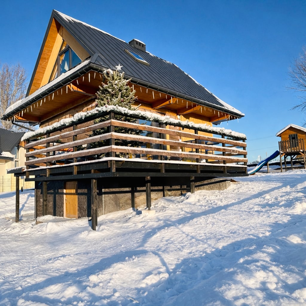 Prekrasna drvena kuća stoji u Poroninu, pored Zakopanea. U društvu livada i Tatra. Sa terasom obasjanim suncem i zadivljujućim pogledom. Za parove koji su zaljubljeni u duge šetnje i lijepe večeri pored organskog kamina. Za porodice za lude dane u vrtu, odbojkaške igre i čarobne planinske avanture. Da bi prijatelji otišli na skijanje, zapalite lomaču u vrtu kako biste razgovarali, smijali se, pjevali i provodili vrijeme aktivno. Za ljubitelje Tatra, biciklista, berača gljiva, skijaša. Za one koji bježe od gradske vreve.