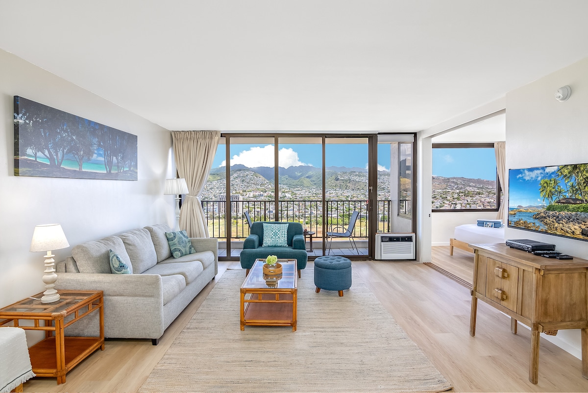Dobro došli u svoje uzdignuto utočište u Waikikiju, gdje pogled na planine i povjetarac s ostrva određuju ton za opuštajući boravak! - Za 4 osobe | 1 spavaća soba | 2 kreveta | 1 kupatilo - Ugaona jedinica na 32. spratu s pogledom na planine i grad - Zajednički grijani bazen, masažne kade i sauna (bazeni i masažne kade se renoviraju do aprila 2026.) – Privatni lanai, osnovne potrepštine za plažu i zajednički pristup plaži - Besplatna garaža za parkiranje - 1 mjesto i punjač za električna vozila - nivo 2 - Potpuno opremljena kuhinja, namjenski radni prostor i pristup liftu