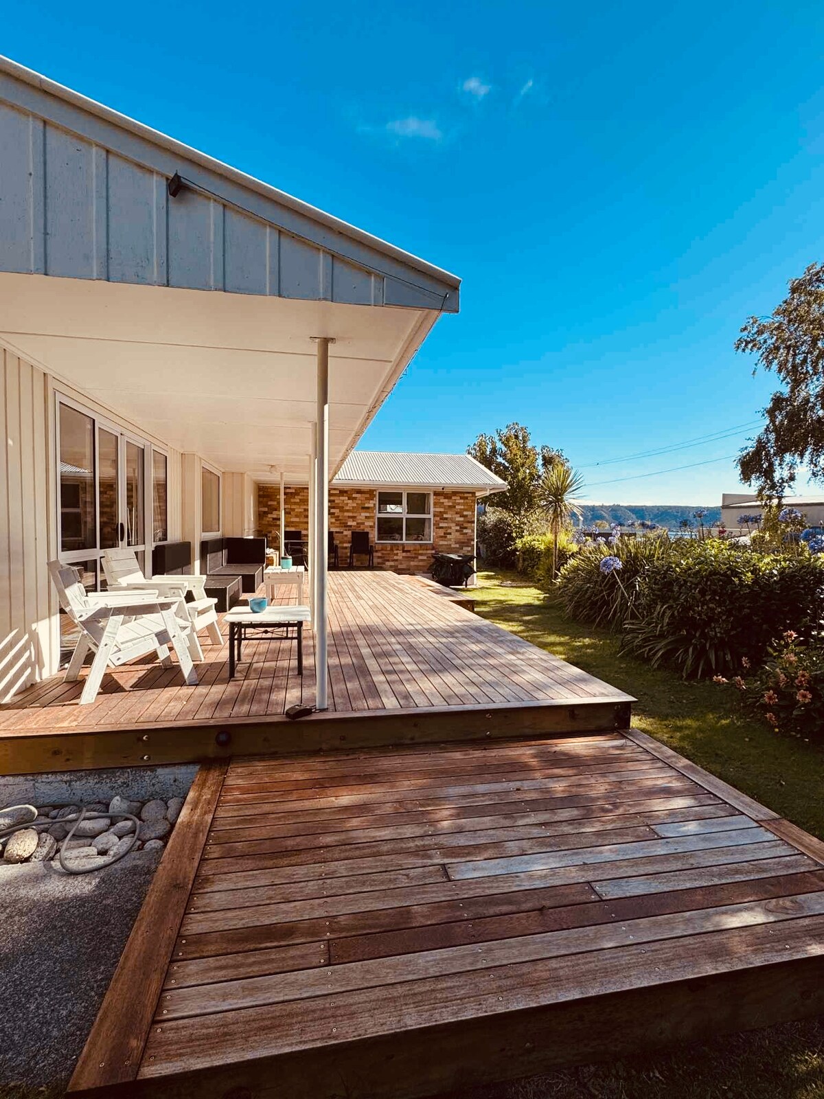 Beachfront & new on the shores of Lake Taupo at beautiful 5 mile Bay, perfection! Set up for relaxation this home offers two sun drenched decks and space for everyone. Open plan kitchen and dining ensure no one misses out. 2 bedrooms face the water, imagine waking up to uninterrupted lake views. This holiday home has been well thought out. It is simplistic, stylish and fresh. You will feel invigorated after your stay.